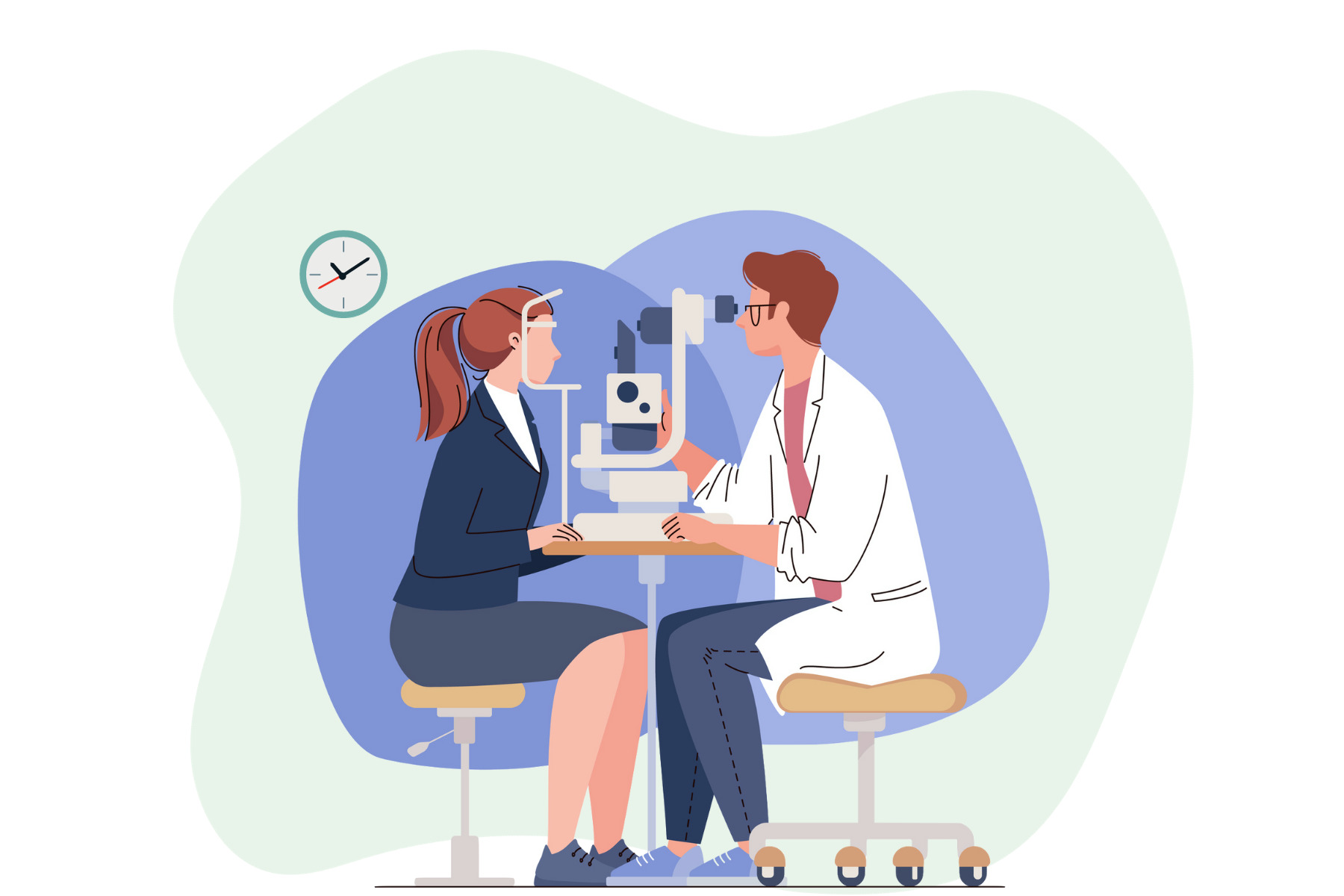 Nel corso della topografia, il paziente, seduto con la fronte e il mento appoggiati su supporti specifici, fissa una fonte luminosa per alcuni istanti.