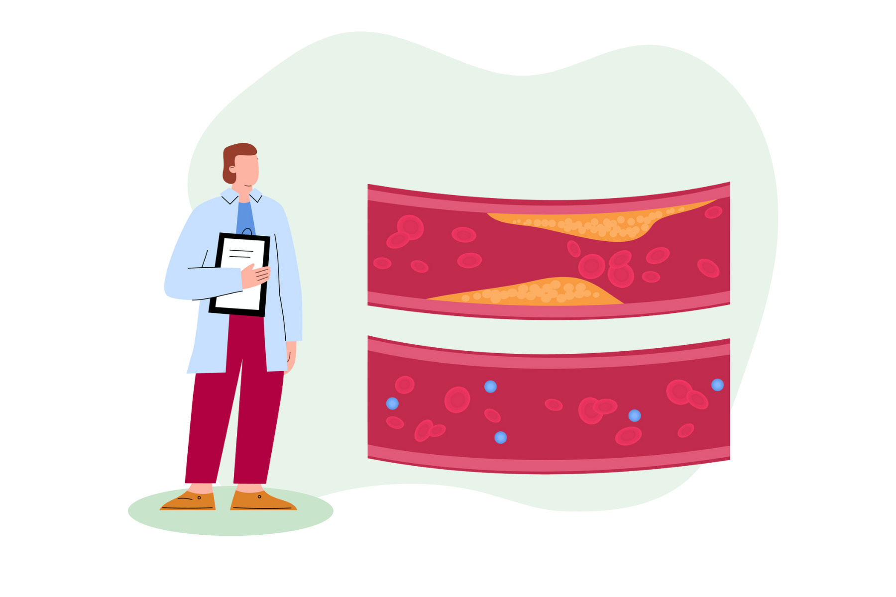 L’eccesso di colesterolo ha la tendenza a depositarsi sulle pareti delle arterie, causando la formazione di lesioni che le ispessiscono e ne alterano la funzione fisiologica. Questo processo, noto come aterosclerosi, nel tempo può portare alla formazione di placche che ostacolano o bloccano completamente il flusso sanguigno, comportando rischi per la salute dovuti a ischemie, infarti e ictus.
