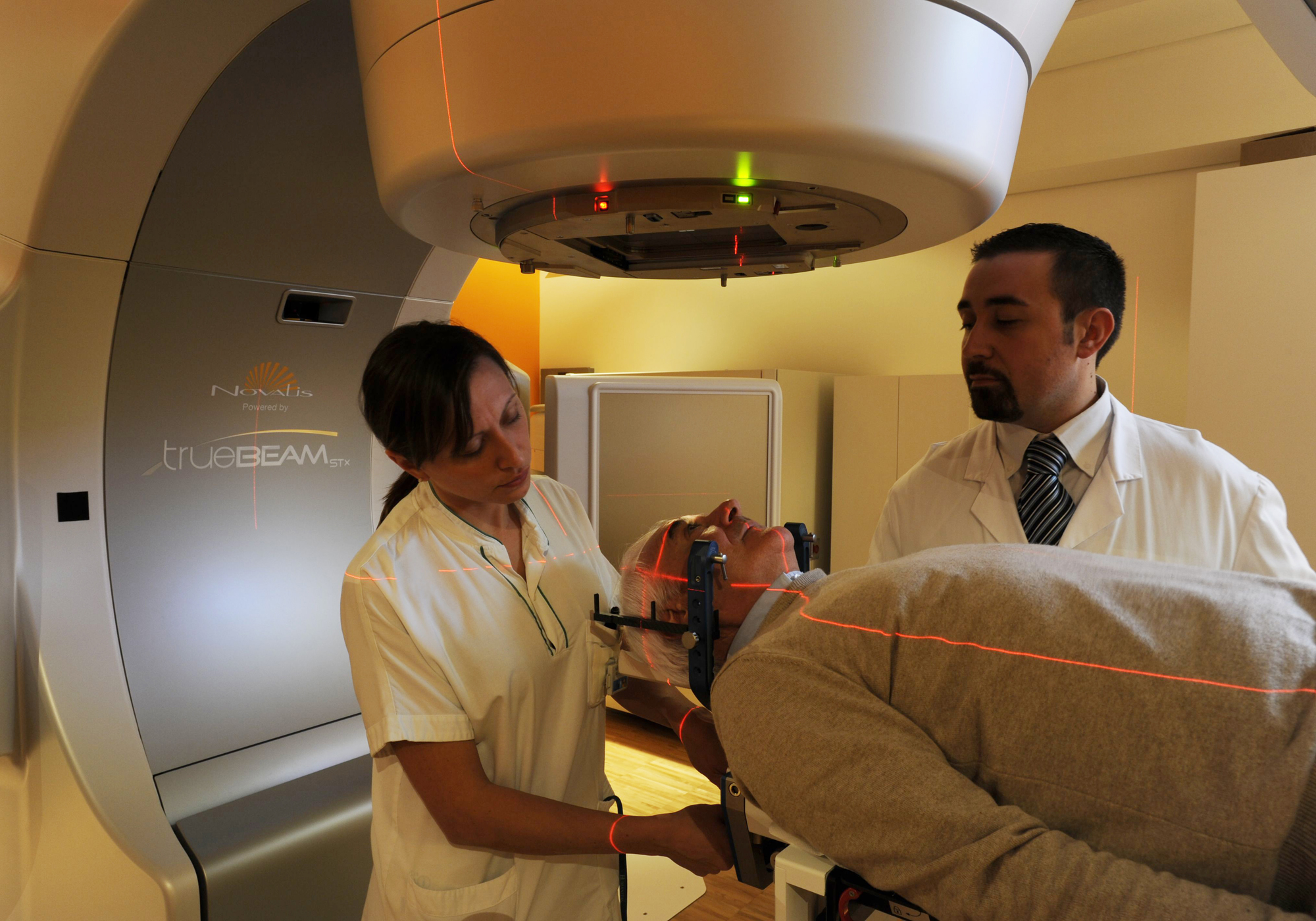 “Il paziente arriva in radioterapia su indicazione del medico radioterapista oncologo. Viene sottoposto a TC, un esame fondamentale per designare la lesione bersaglio e individuare gli organi sani circostanti, viene poi effettuato il piano di trattamento, il cui obiettivo è colpire la lesione in maniera massiccia, con una dose di radiazioni definita, minimizzando l’irradiazione degli organi vicini”, spiega il dottor Mancosu.